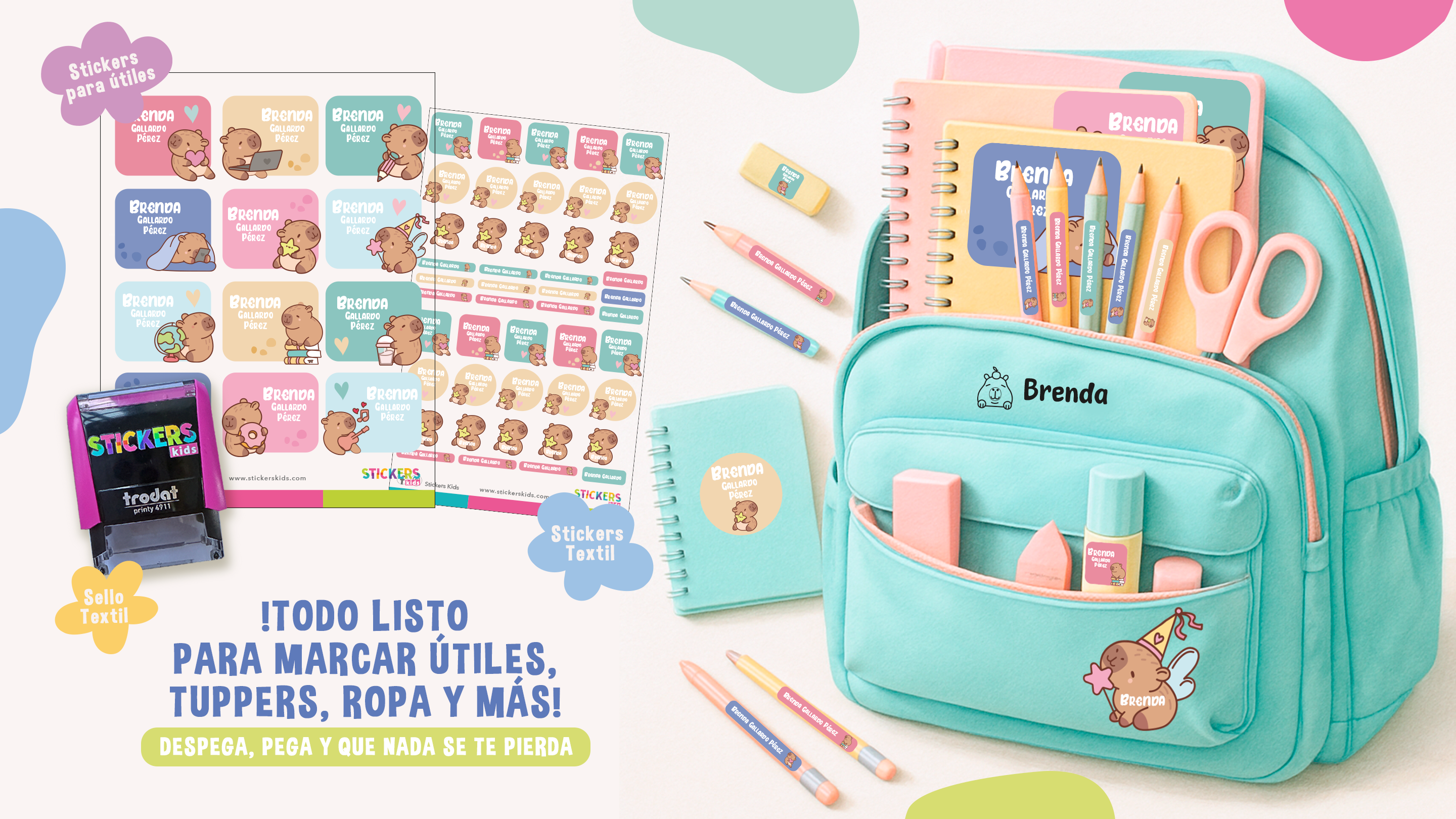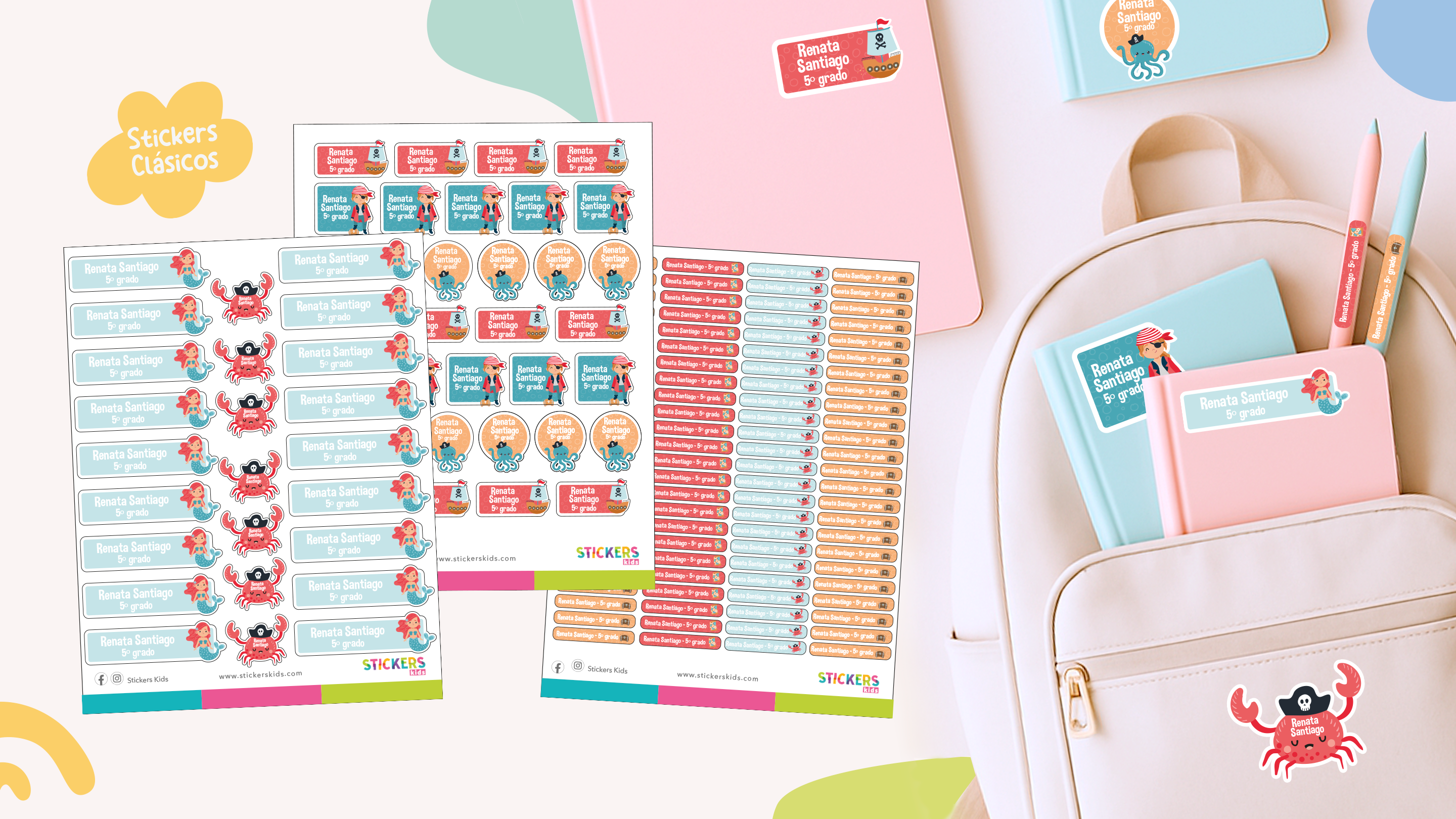STICKERS PERSONALIZADOS PARA CUADERNOS, ÚTILES, ROPA Y MÁS. ¡RESISTENTES AL AGUA, LAVADORA Y MICROONDAS!