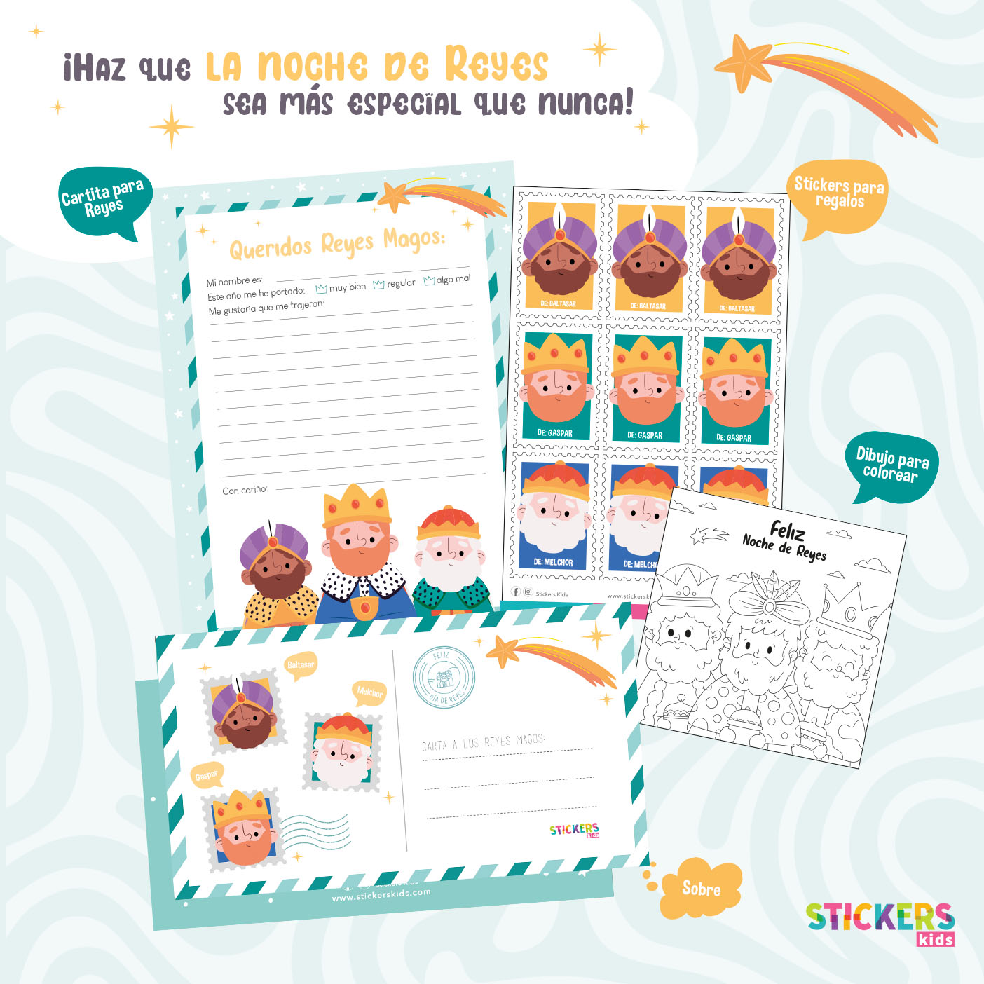 ¡Haz que este Día de Reyes sea inolvidable!Nuestra carta especial viene con:💌 Un diseño listo para que tu peque escriba su cartita🎨 Dibujo para colorear🎁 Stickers mágicos para identificar los regalos📩 Sobre especial para entregarla con emoción