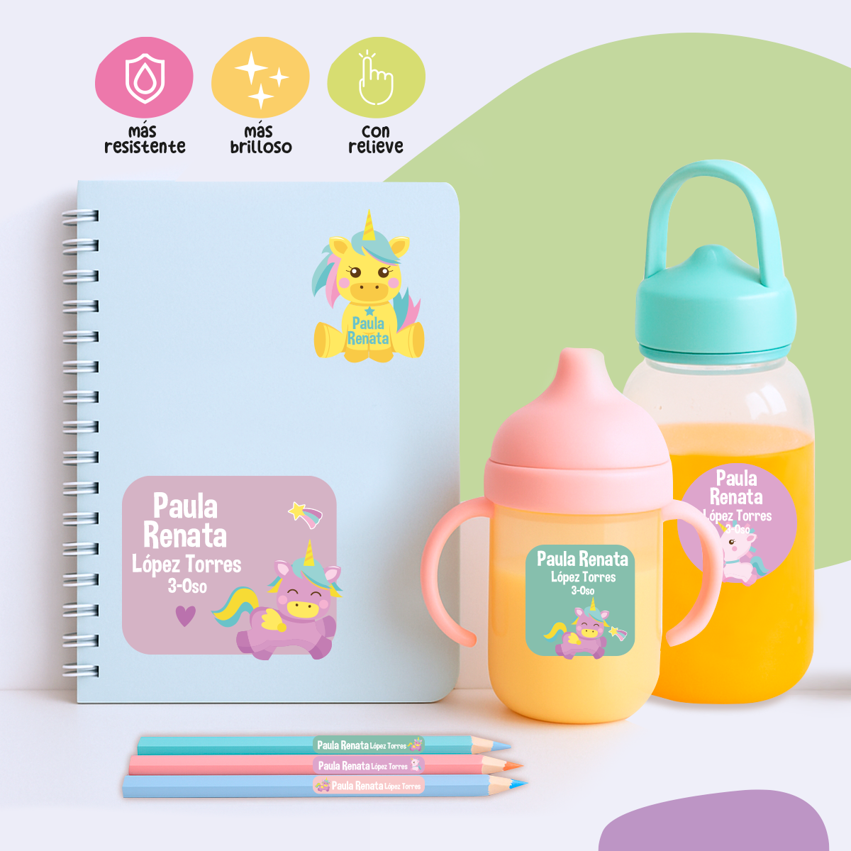 Identifica útiles, cuadernos, lápices y tuppers con stickers que saltan a la vista y que a tus peques les van a encantar.