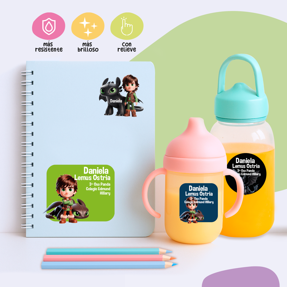 Identifica útiles, cuadernos, lápices y tuppers con stickers que saltan a la vista y que a tus peques les van a encantar.
