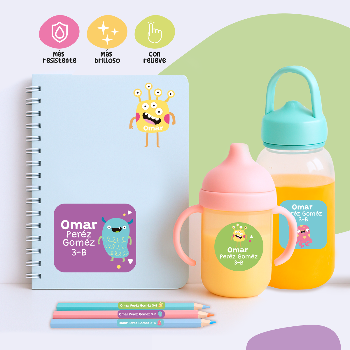 Identifica útiles, cuadernos, lápices y tuppers con stickers que saltan a la vista y que a tus peques les van a encantar.