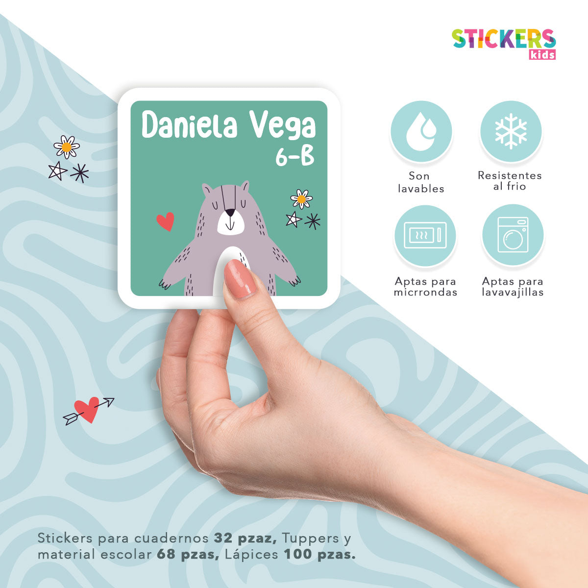 • 32 etiquetas medianas para tuppers y útiles (4 a 5 cm)