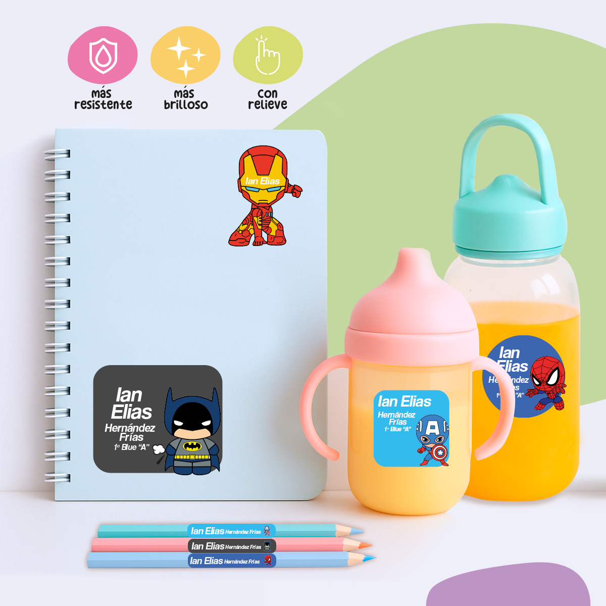 Identifica útiles, cuadernos, lápices y tuppers con stickers que saltan a la vista y que a tus peques les van a encantar.
