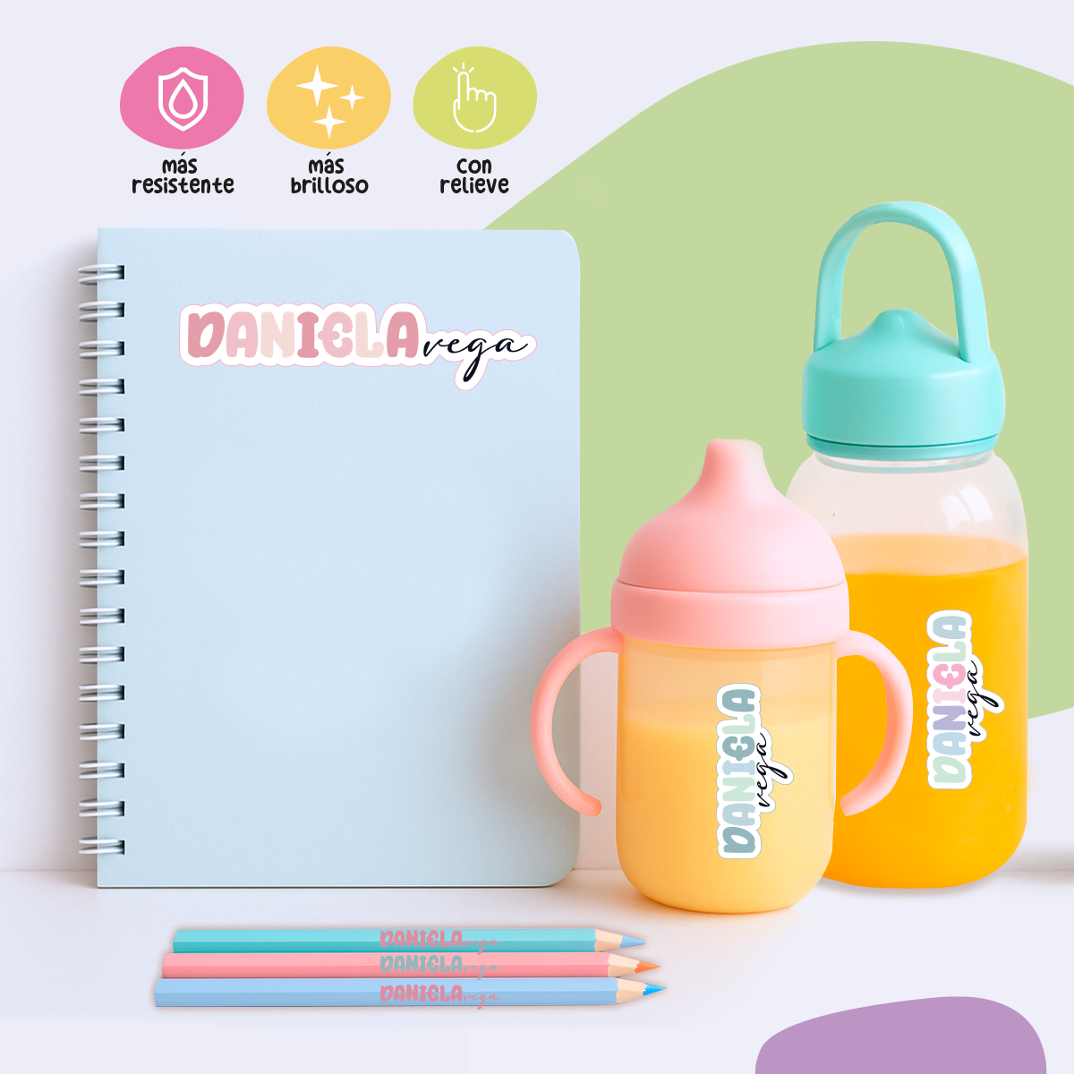 Identifica útiles, cuadernos, lápices y tuppers con stickers que saltan a la vista y que a tus peques les van a encantar.