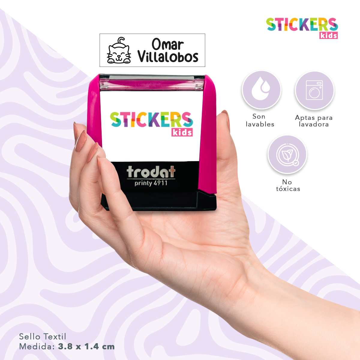 Nuestro sello textil incluye un cartucho de Tinta textil en color negro (no tóxica.)